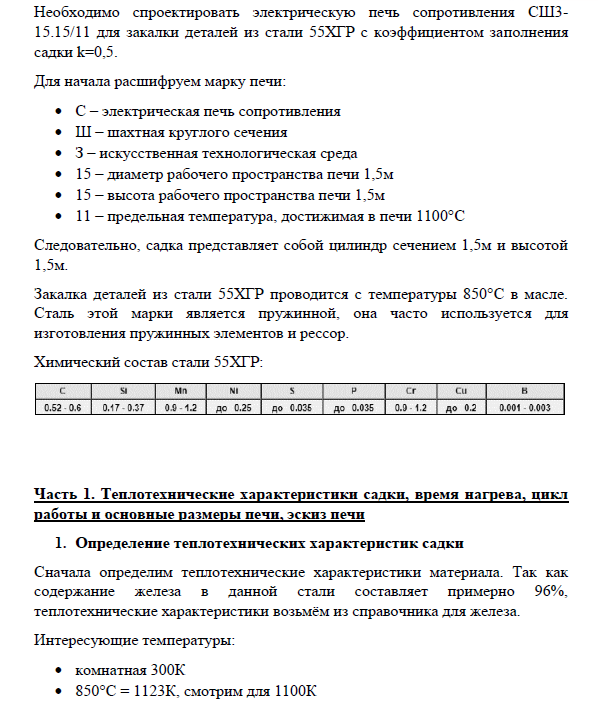 Для студентов МГТУ им. Н.Э.Баумана по предмету Нагревательные устройства в термическом производствеПроектирование электрической печи сопротивления СШЗ-15.15/11 для закалки деталей из стали 55ХГРПроектирование электрической печи сопротивления СШЗ-15.15/11 для закалки деталей из стали 55ХГР