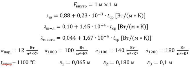 Определить тепловой поток через 3-х слойную стенку печи, а также температуры поверхностей каждого слоя.