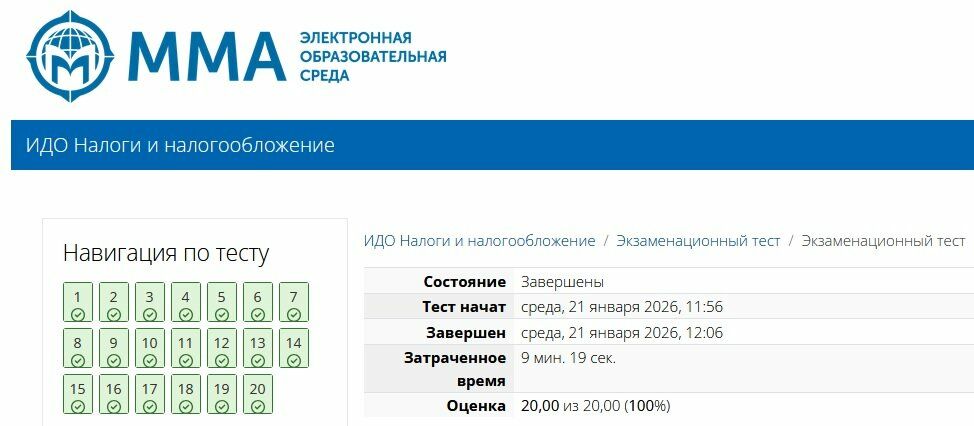 Сборник ответов к экзаменационному тесту Налоги и налогообложение ММА.
