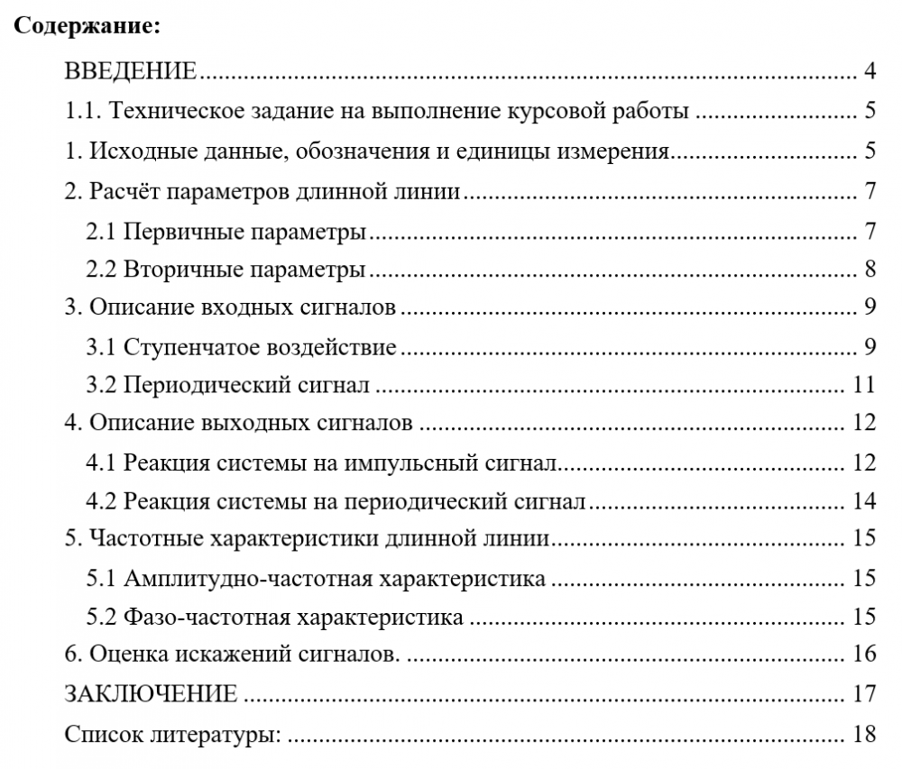 Характеристики курсовой работы