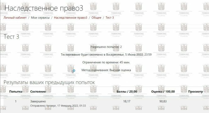 Тест 3 Наследственное право Витте 2, 4, 6 семестр, балл 90,83%