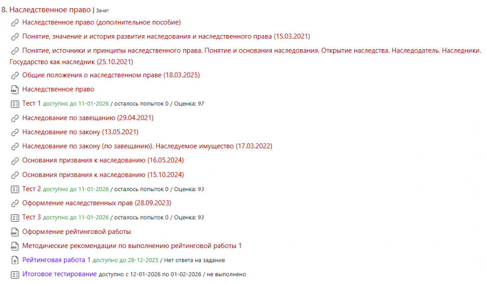 Ответы к зачёту Тесты 1-3: Наследственное право (Тесты 1-3)