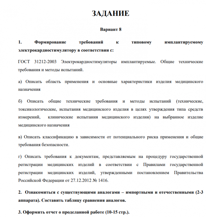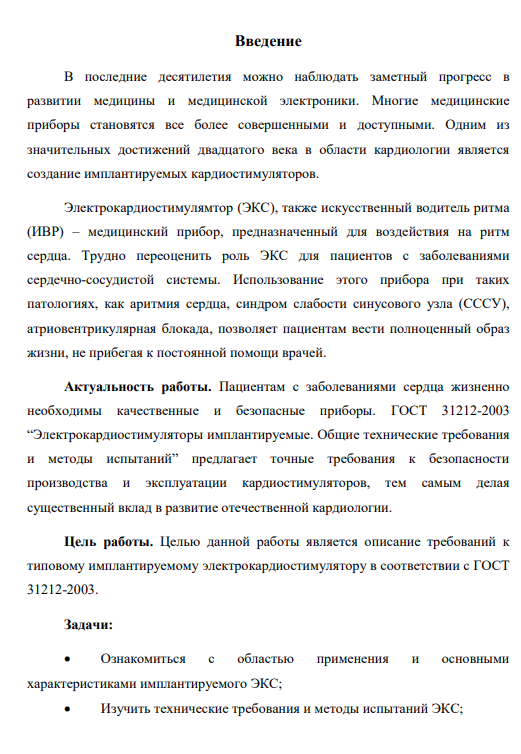Цель работы. Целью данной работы является описание требований к типовому имплантируемому электрокардиостимулятору в соответствии с ГОСТ 31212-2003.