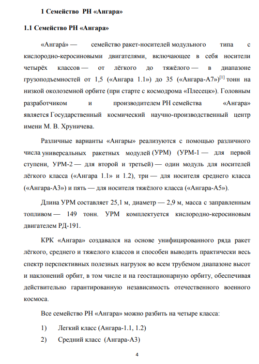 В последние годы в отечественной промышленности остро стоит вопрос о создании универсальной системы ракет-носителей, способных при помощи комбинации различных составных частей обеспечивать весь диапазон грузоподъемностей, начиная от РН легкого и среднего классов и заканчивая сверхтяжелыми гигантами. Именно для этой цели и служит разрабатываемое в данный момент на Государственном космическом научнопроизводственном центру имени М. В. Хруничева семейство ракет-носителей «Ангара» [].КРК «Ангары» является универсальным для ракет семейства «Ангара», и поэтому может обеспечивать не только вывод полезного груза массой до 14 тонн на низкие околоземные орбиты, но и способен работать в диапазоне полезных нагрузок от 2 до 35 тонн, выводя их на низкие, средние, высокие круглые и эллиптические орбиты (в том числе, солнечносинхронные и стационарные).