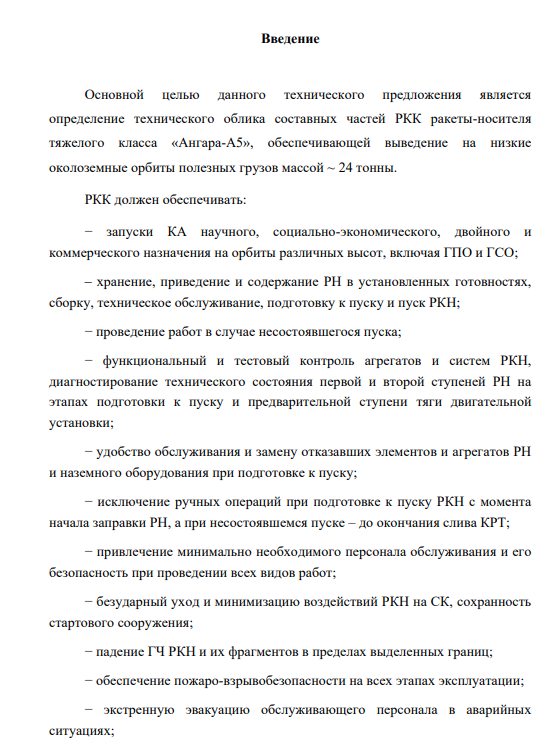 Основной целью данного технического предложения является определение технического облика составных частей РКК ракеты-носителя тяжелого класса «Ангара-А5», обеспечивающей выведение на низкие околоземные орбиты полезных грузов массой ~ 24 тонны.