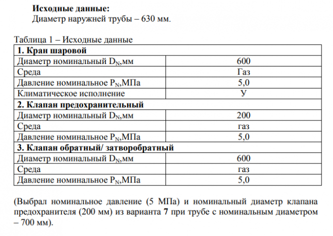 ДЗ: Выбор и определение параметров трубопроводной арматуры