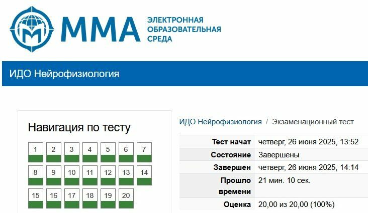 Сборник ответов к экзаменационному тесту Нейрофизиология ММА.