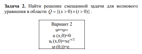 Задача 2: Найти решение смешанной задачи для волнового уравнения в области Q вариант 2