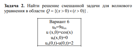 Задача 2: Найти решение смешанной задачи для волнового уравнения в области Q вариант 6