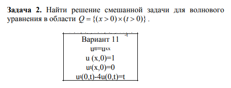 Задача 2: Найти решение смешанной задачи для волнового уравнения в области Q вариант 11
