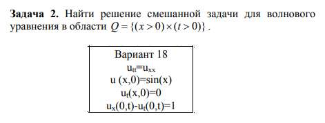 Задача 2: Найти решение смешанной задачи для волнового уравнения в области Q вариант 18