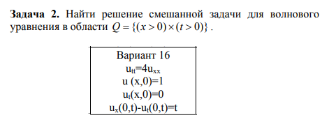 Задача 2: Найти решение смешанной задачи для волнового уравнения в области Q вариант 16