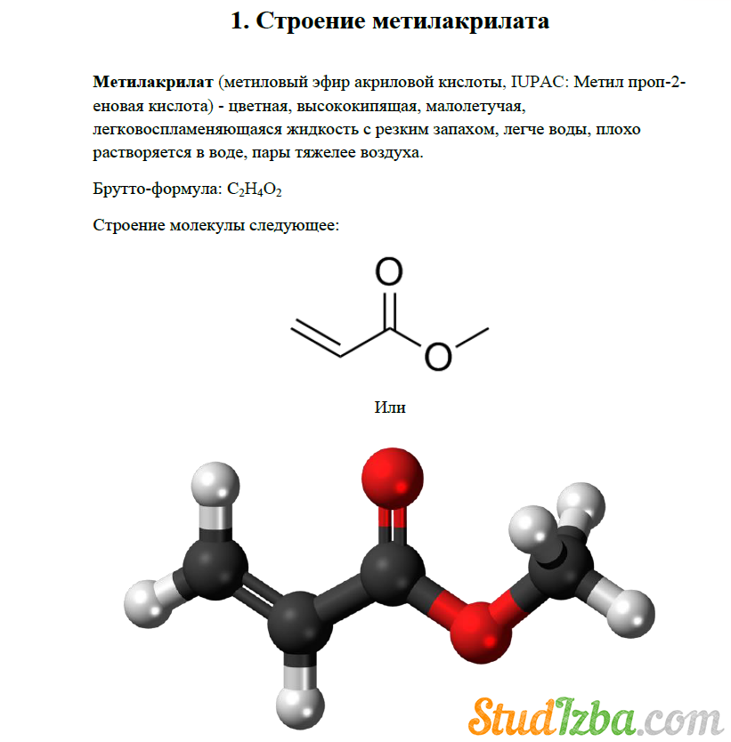 Для студентов МГТУ им. Н.Э.Баумана по предмету Неметаллические материалыДомашнее задание "Метилакрилат"Домашнее задание "Метилакрилат"