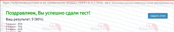 Для студентов ИДДО НИУ «МЭИ» по предмету Нейрокомпьютеры и их применениеПомощь со сдачей - КМ-4. Типы искусственных нейронных сетей, имитирующих свойства естественных нейронных сетей. ТестированиеПомощь со сдачей - КМ-4. Типы искусственных нейронных сетей, имитирующих свойства естественных нейронных сетей. Тестирование