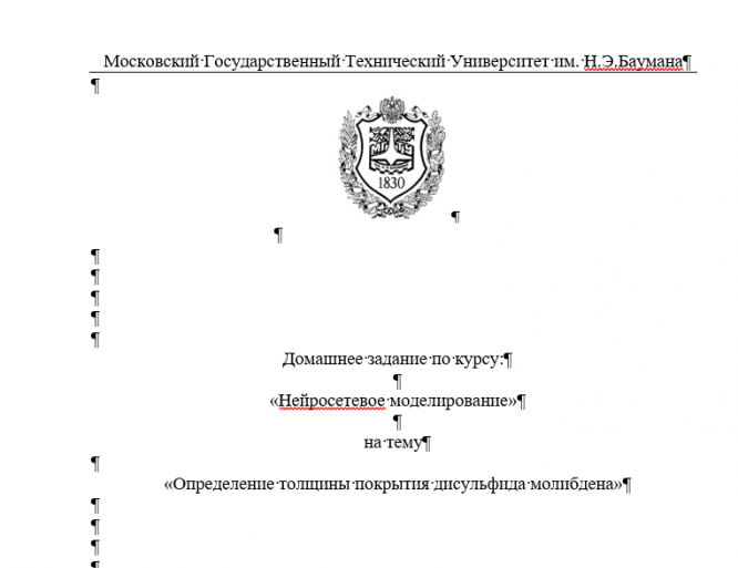 Для студентов МГТУ им. Н.Э.Баумана по предмету Нейросетевое моделирование сложных технических системДомашнее заданиеДомашнее задание