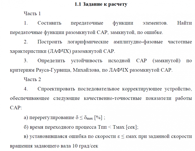 Для студентов МГТУ им. Н.Э.Баумана по предмету НИР - Теория автоматического управленияРасчет линейной стационарной следящей системы управления угловым положением объектаРасчет линейной стационарной следящей системы управления угловым положением объекта
