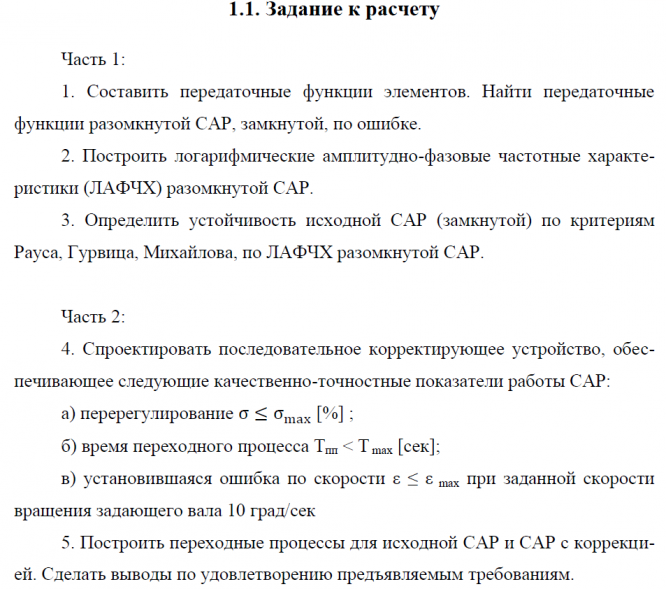 Для студентов МГТУ им. Н.Э.Баумана по предмету НИР - Теория автоматического управленияРасчет линейной стационарной следящей системы управления угловым положением объектаРасчет линейной стационарной следящей системы управления угловым положением объекта