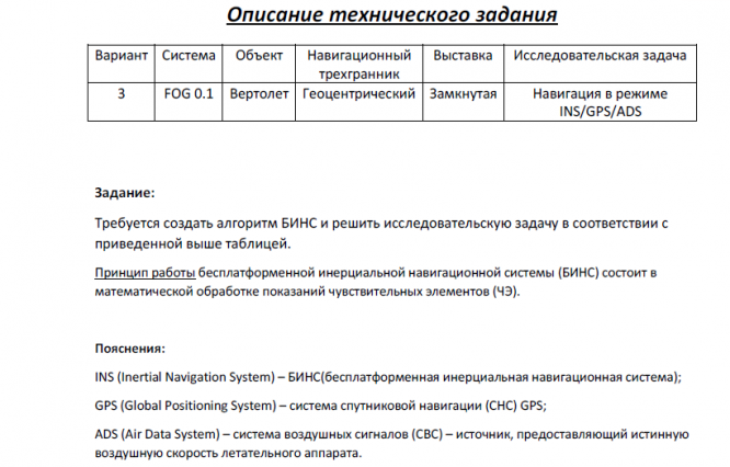 Для студентов МГТУ им. Н.Э.Баумана по предмету НИР - Высокоточные системы навигацииРазработка алгоритма БИНС (вариант №3)Разработка алгоритма БИНС (вариант №3)