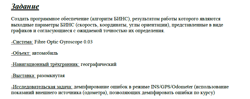 Для студентов МГТУ им. Н.Э.Баумана по предмету НИР - Высокоточные системы навигацииРазработка алгоритма БИНС (вариант №6)Разработка алгоритма БИНС (вариант №6)