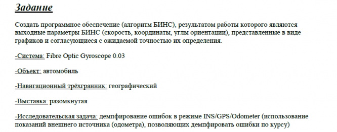 Для студентов МГТУ им. Н.Э.Баумана по предмету НИР - Высокоточные системы навигацииРазработка алгоритма БИНС (вариант №6)Разработка алгоритма БИНС (вариант №6)