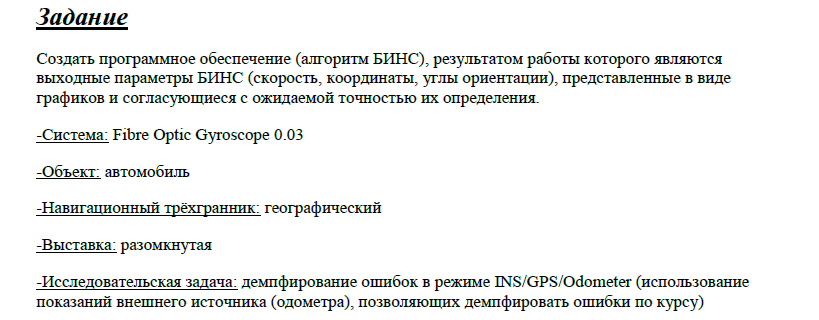 Для студентов МГТУ им. Н.Э.Баумана по предмету НИР - Высокоточные системы навигацииРазработка алгоритма БИНС (вариант №6)Разработка алгоритма БИНС (вариант №6)