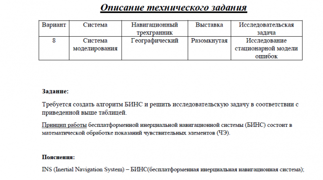 Для студентов МГТУ им. Н.Э.Баумана по предмету НИР - Высокоточные системы навигацииРазработка алгоритма БИНС (вариант №8)Разработка алгоритма БИНС (вариант №8)