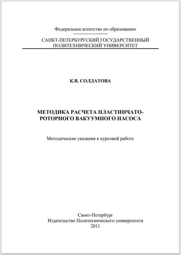 Главная » Учебные материалы » Низковакуумные насосы » Книги » Несколько классов/семестров » Методика расчета пластинчато-роторного вакуумного насоса