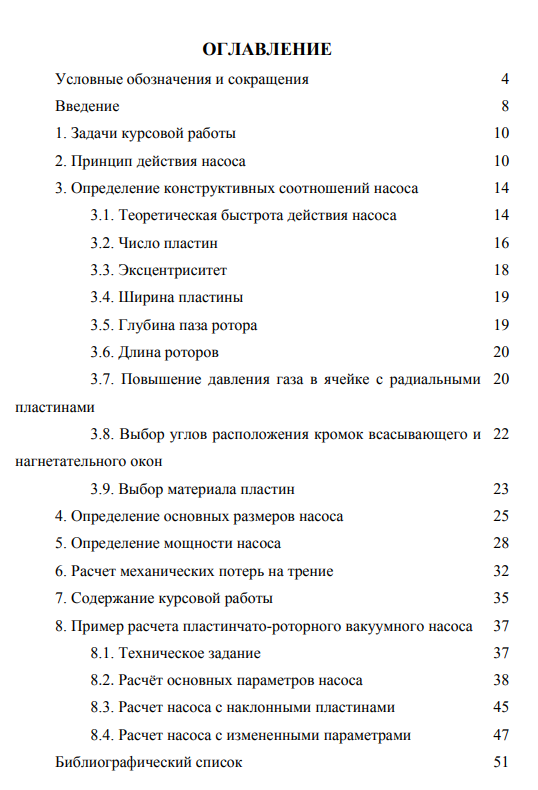 1. В методических указаниях к курсовой работе рассматривается принцип действия пластинчато-роторного вакуумного насоса, области применения, достоинства и недостатки, особенности откачки, принцип расчета быстроты откачки, методика определения основных размеров насоса.