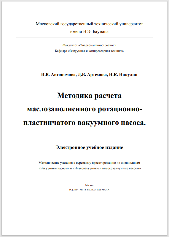 Главная » Учебные материалы » Низковакуумные насосы » Книги » МГТУ им. Н.Э.Баумана » Несколько классов/семестров » Методика расчета маслозаполненного ротационно-пластинчатого вакуумного насоса
