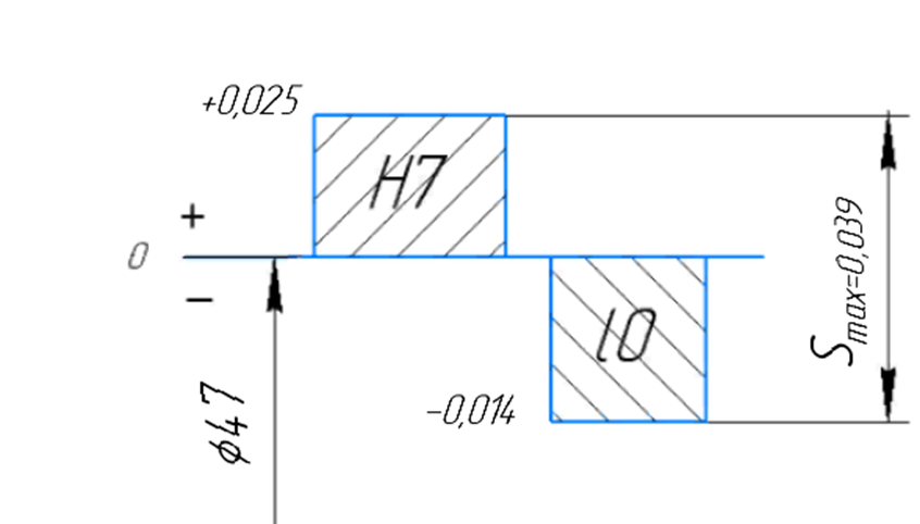- Для поля допуска Н7 диаметра 47 мм отверстия в корпусе редуктора: