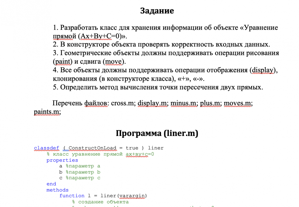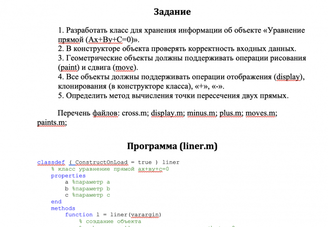 Для студентов МГТУ им. Н.Э.Баумана по предмету Объектная среда для инженерных расчётов в системе MATLABУравнение прямой (Ax+By+C=0). Определить метод вычисления точки пересечения двух прямых.Уравнение прямой (Ax+By+C=0). Определить метод вычисления точки пересечения двух прямых.