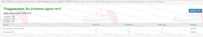 Ответы к заданиям КМ-3: КМ-3. Разработка сложных приложений с использованием объектно-ориентированного подхода. Тестирование - 95,2%