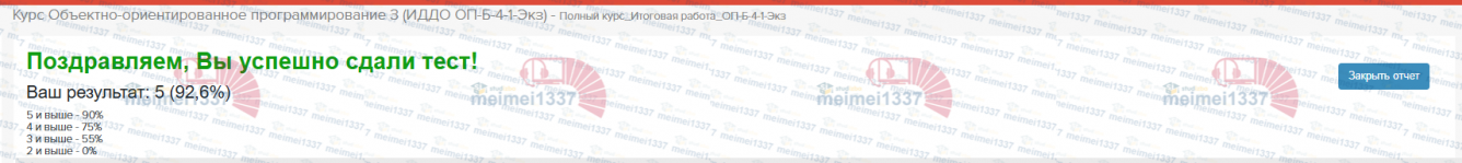 Для студентов ИДДО НИУ «МЭИ» по предмету Объектно-ориентированное программирование (ООП)Полный курс_Итоговая работа_ОП-Б-4-1-Экз - 92,6%Полный курс_Итоговая работа_ОП-Б-4-1-Экз - 92,6%