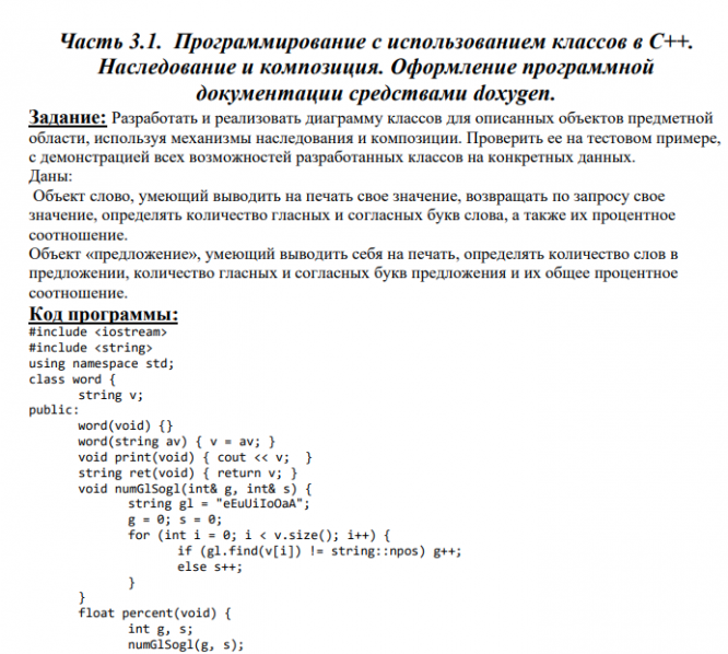 Часть 3.1. Программирование с использованием классов в С++. Наследование и композиция. Оформление программной документации средствами doxygen.