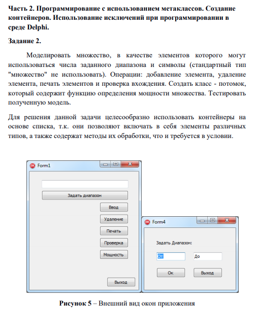 Часть 2. Программирование с использованием метаклассов. Создание контейнеров. Использование исключений при программировании в среде Delphi.