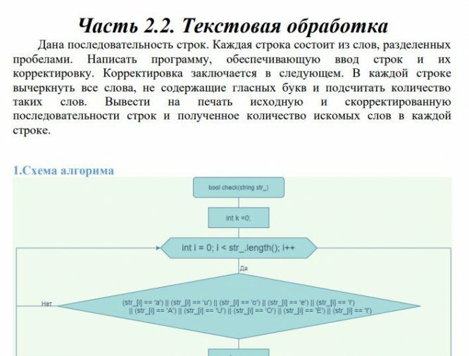 Часть 2.2. Текстовая обработка Дана последовательность строк. Каждая строка состоит из слов, разделенных пробелами. Написать программу, обеспечивающую ввод строк и их корректировку. Корректировка заключается в следующем. В каждой строке вычеркнуть все слова, не содержащие гласных букв и подсчитать количество таких слов. Вывести на печать исходную и скорректированную последовательности строк и полученное количество искомых слов в каждой строке.