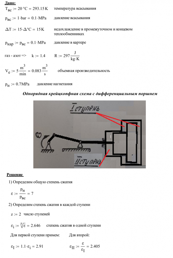 Для студентов МГТУ им. Н.Э.Баумана по предмету Объемные машины низкотемпературной техникиТермодинамический (тепловой) расчет двухступенчатого газового поршневого компрессораТермодинамический (тепловой) расчет двухступенчатого газового поршневого компрессора
