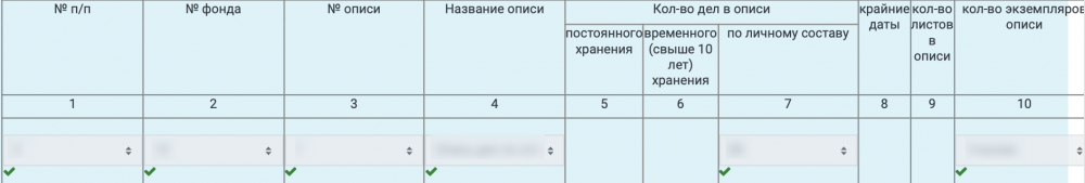Заполните реестр описи известными сведениями. (выберите подходящий вариант ответа из выпадающего списка) Сведения: порядковый номер – 2, номер фонда – 13, номер описи – 1, название описи – «Опись дел по л/с», кол-во дел в описи по личному составу – 80, кол-во экземпляров – «1+копия». Обратите внимание, что задание содержит фальш-ответы (неправильные сведения для заполнения реестра). Внимание! Если таблица не помещается на экране полностью, то попробуйте три способа: Уменьшить масштаб экрана; Скрыть синее меню слева; Зажать колёсико мыши и протянуть в правую сторону. Составление перечня основных учетных документов в архиве с описанием их характеристик. Установите соответствие характеристик и основных учетных документов в архиве.
