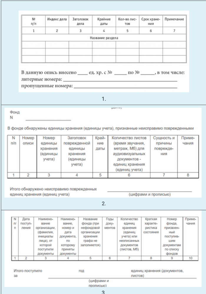 Какой из представленных фрагментов документов является формой книги учета поступления документов? Впишите ответ цифрой. Определение форм основных учетных документов архива. Какой из представленных фрагментов документов является формой списка фондов? Впишите ответ цифрой.  .