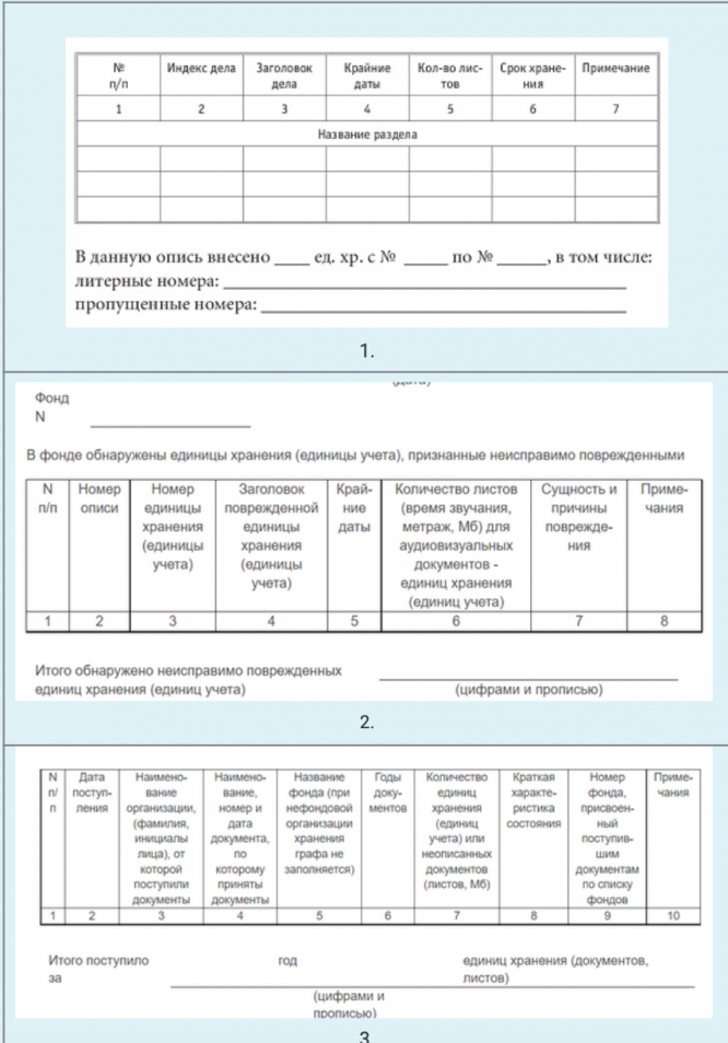 Какой из представленных фрагментов документов является формой книги учета поступления документов? Впишите ответ цифрой. Определение форм основных учетных документов архива. Какой из представленных фрагментов документов является формой списка фондов? Впишите ответ цифрой. .