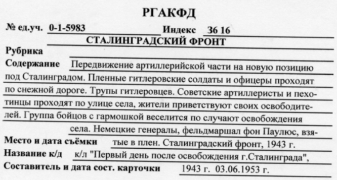 5 В случаях хищения или повреждения архивных документов, в том числе внесения в их текст изменений (если это может быть квалифицировано как повреждение архивного документа), архив принимает меры к возмещению ущерба в соответствии с законодательством Российской Федерации. Какой из представленных фрагментов документов является исторической справкой? Впишите ответ цифрой. Внимательно изучите представленный фрагмент документа. Вам необходимо найти данный документ в электронном каталоге на сайте РГАКФД. В какой из каталогов вам следует войти, чтобы осуществить поиск данного документа? Впишите ответ цифрой. 1 Электронный видеокаталог 2 Электронный кинокаталог 3 Электронный фотокаталог 4 Каталогов на сайте РГАКФД нет Вы сотрудник архива.