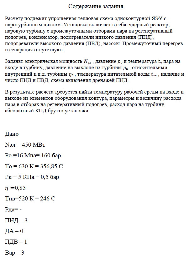 Для студентов МГТУ им. Н.Э.Баумана по предмету Оборудование энергоустановокДомашнее задание "Расчет теплогидравлической схемы ЯЭУ"Домашнее задание "Расчет теплогидравлической схемы ЯЭУ"