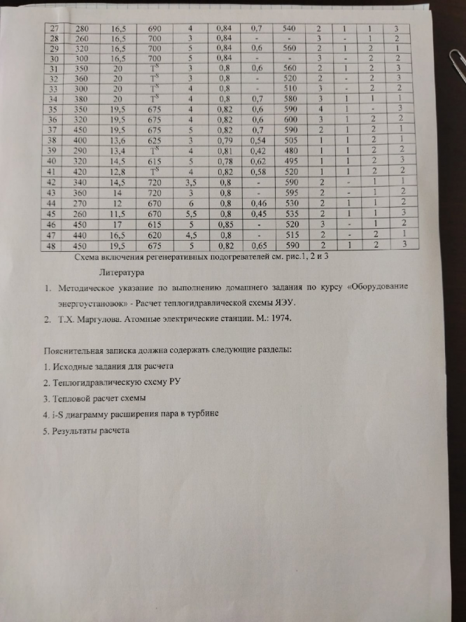 ДЗ: Расчет теплогидравлической схемы ЯЭУ (30 вариант)