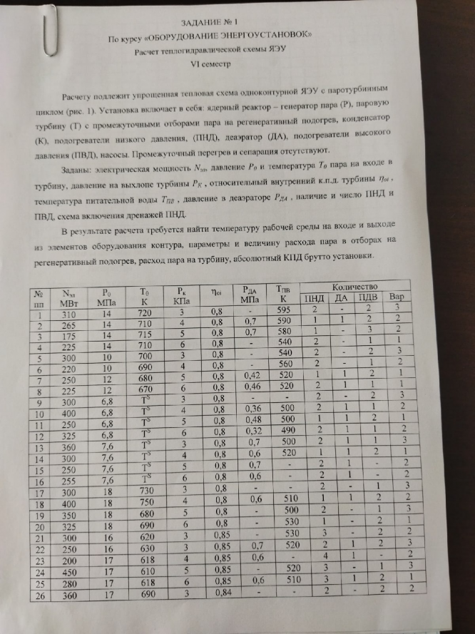 Для студентов МГТУ им. Н.Э.Баумана по предмету Оборудование энергоустановокРасчет теплогидравлической схемы ЯЭУ (30 вариант)Расчет теплогидравлической схемы ЯЭУ (30 вариант)