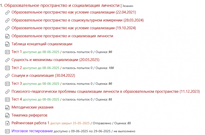 Ответы к экзамену Тесты 1-4: Образовательное пространство и социализация личности (Тесты 1-4)