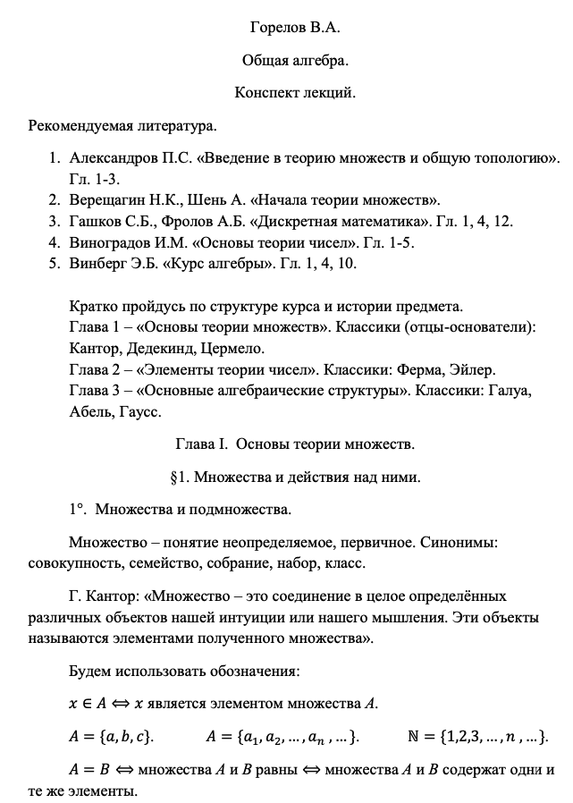 Для студентов НИУ «МЭИ» по предмету Общая алгебраВ.А. Горелов - Конспект лекцийВ.А. Горелов - Конспект лекций