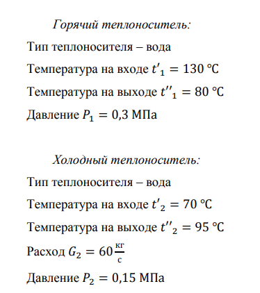 Провести тепловой, конструктивный, поверочный и гидравлический расчёт пластинчатого теплообменника для нагрева холодной воды за счёт горячей воды с заданными параметрами.