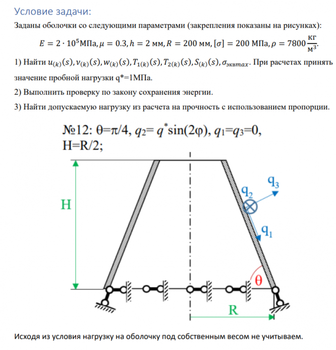 ДЗ 1: Численный расчет безмометных оболочек вращения вариант 12