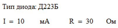 Полупроводниковый диод включен параллельно с линейным резистором R. Общий ток, тип диода и сопротивление резистора заданы. Определить токи через диод и резистор.