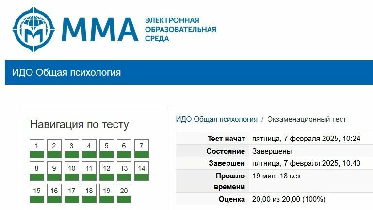 Сборник ответов к экзаменационному тесту Общая психология ММА.